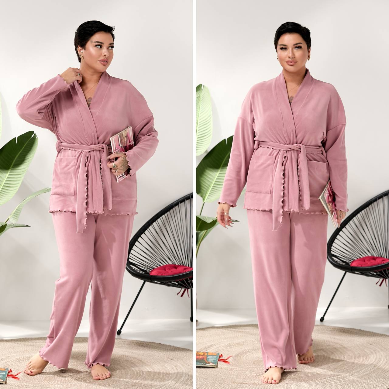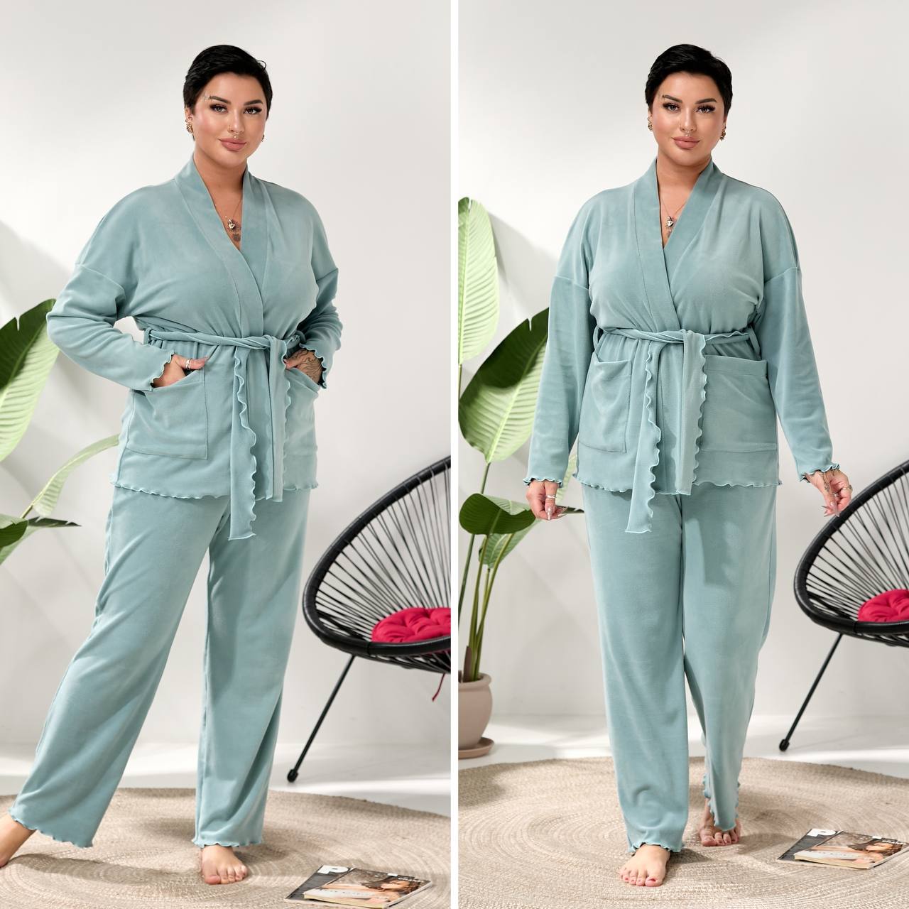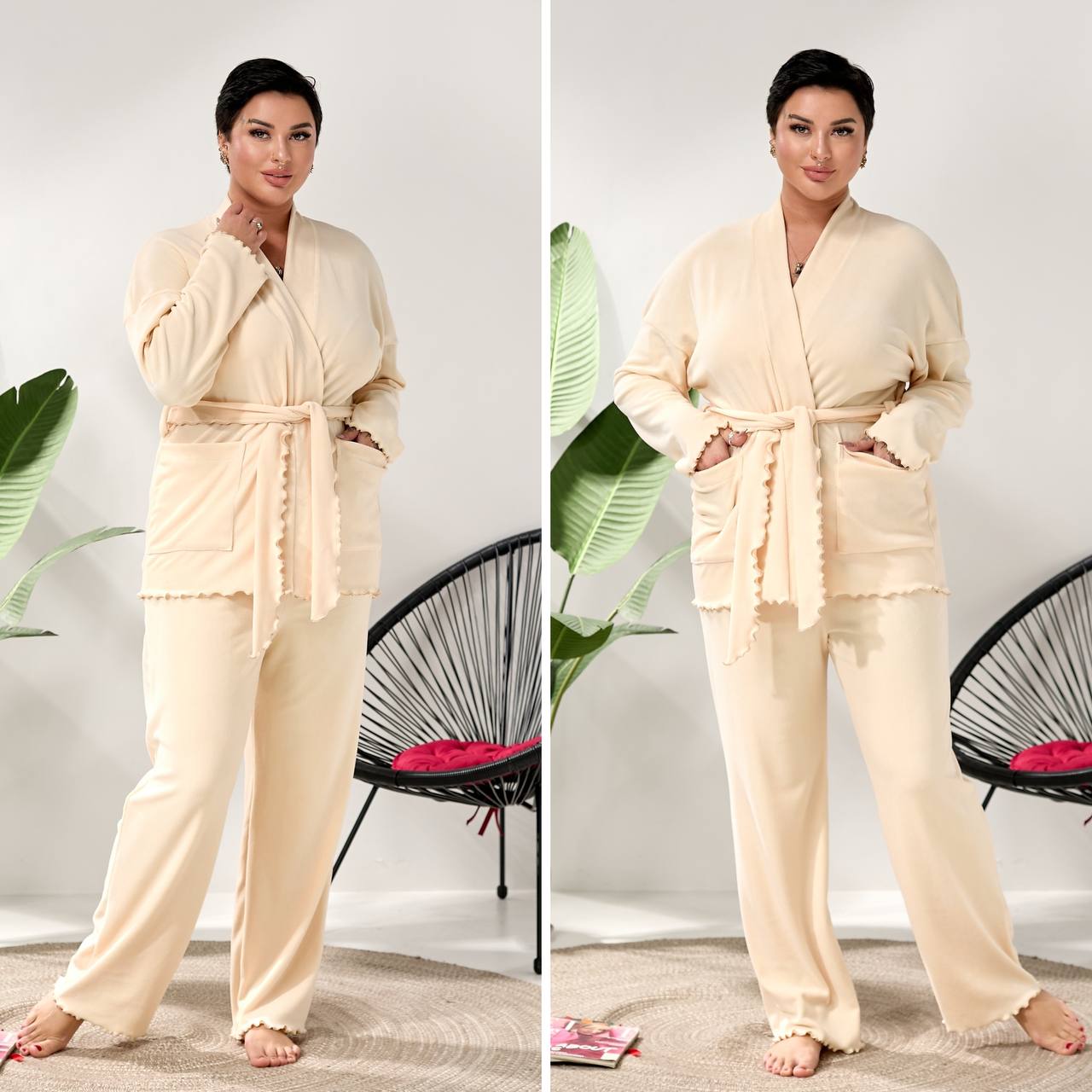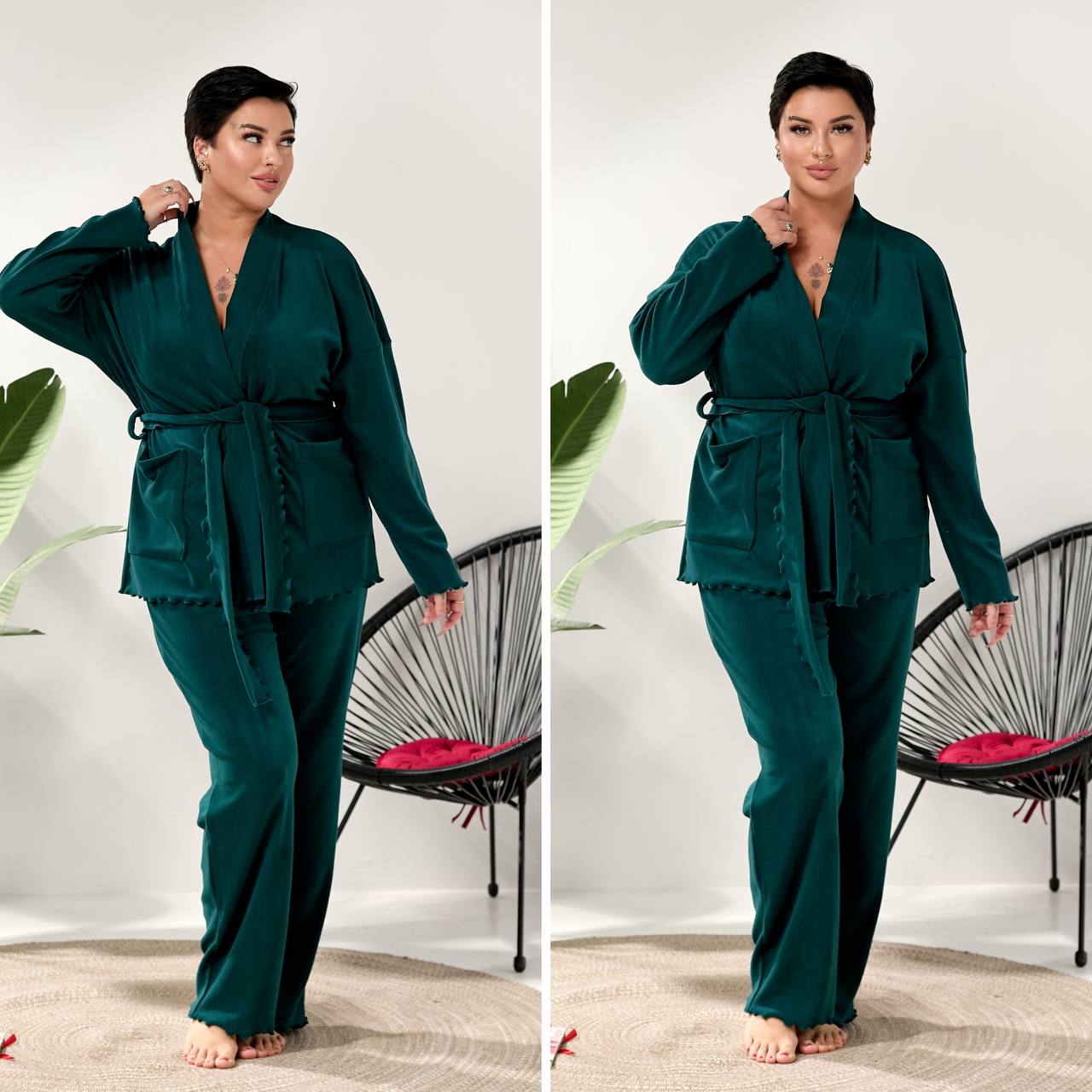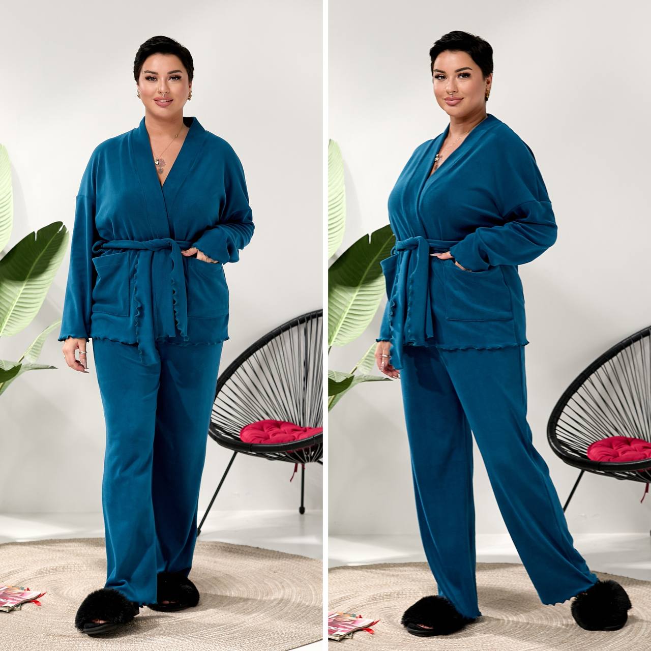 Kobiecy i elegancki komplet stworzony z myślą o komforcie i pięknie. Lakoniczny design w połączeniu z delikatnym materiałem sprawia, że ten komplet jest idealny do domowego wypoczynku i spokojnych dni.